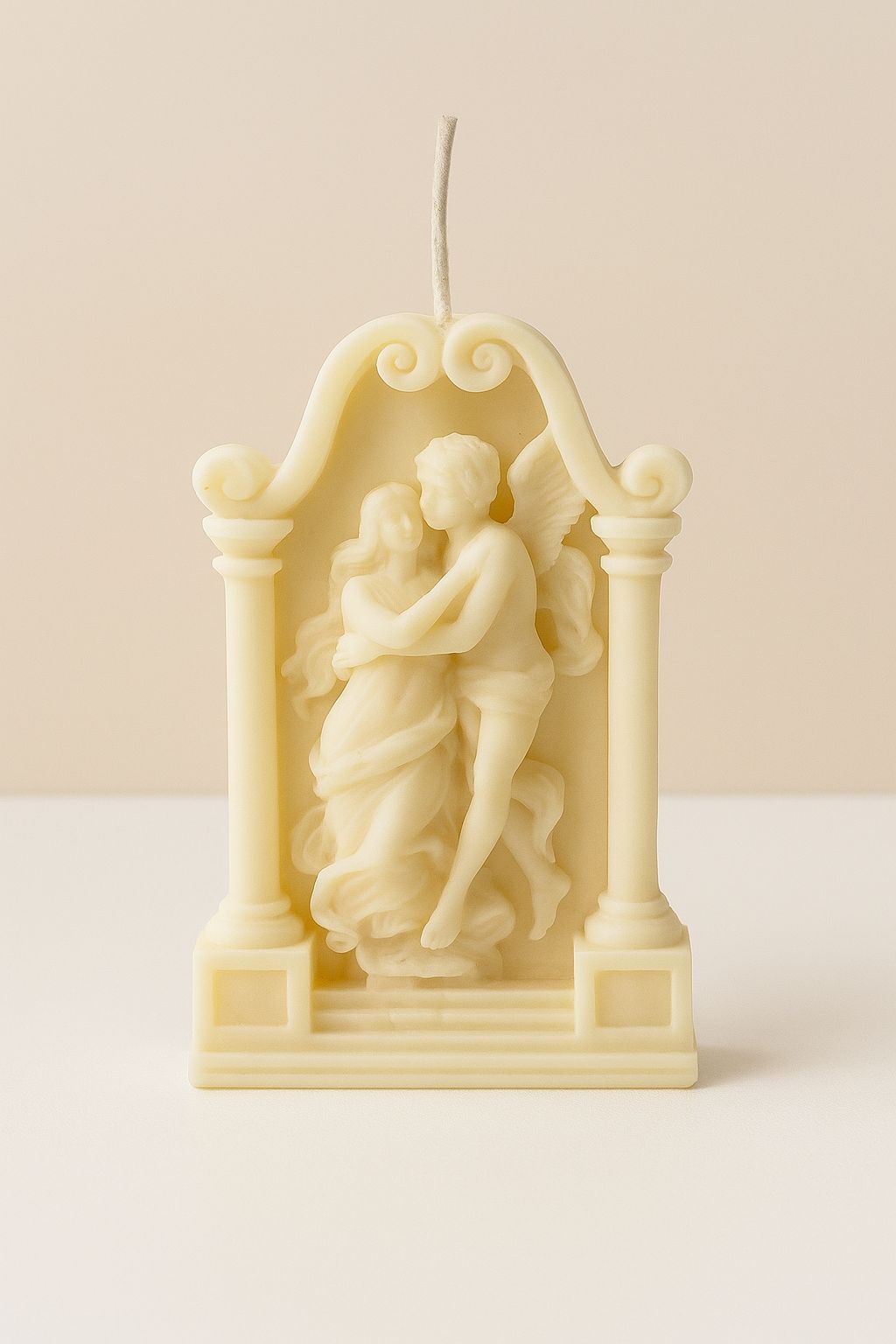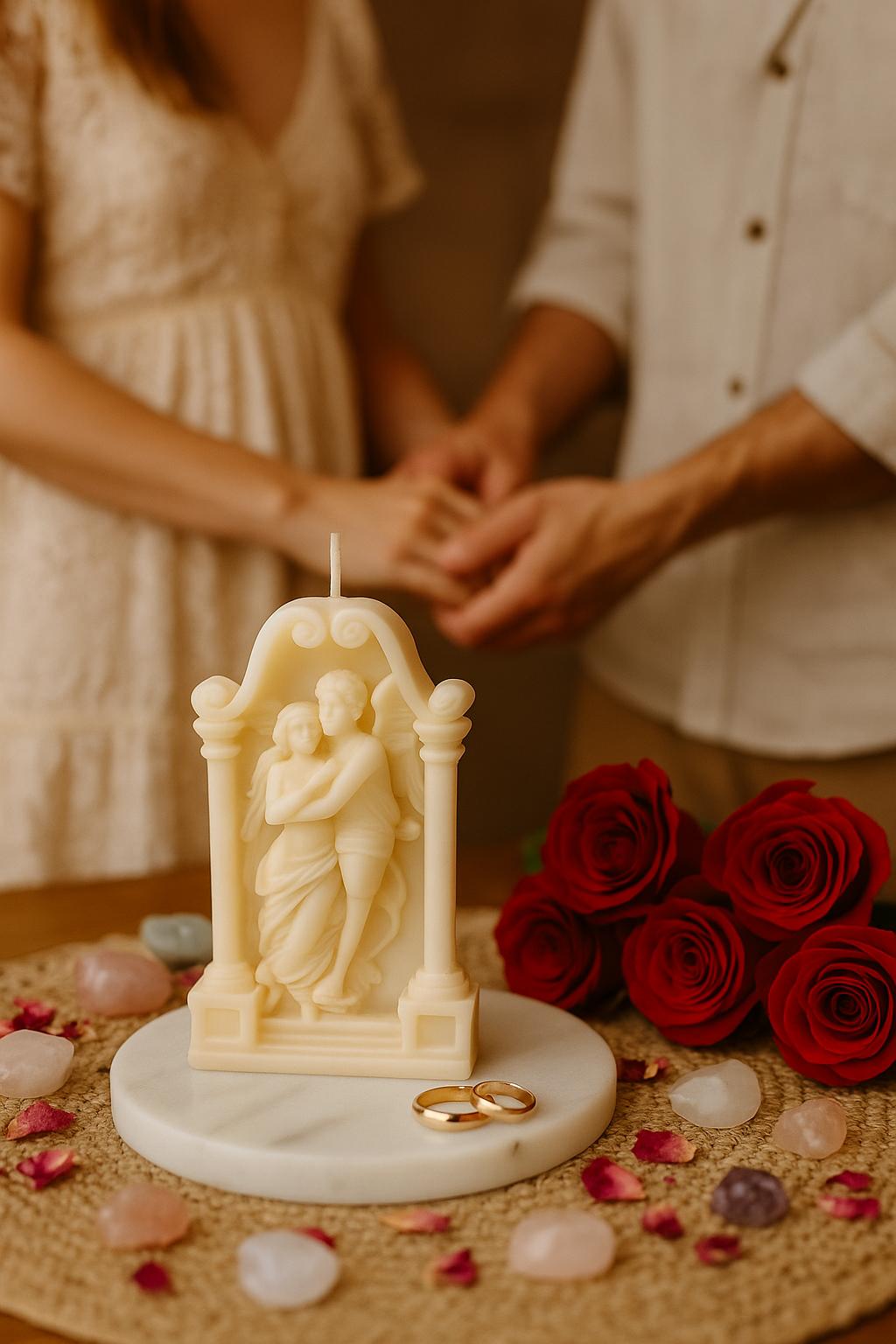 Esta vela escultórica está inspirada en la obra maestra neoclásica “Psique reanimada por el beso de Cupido”, un símbolo eterno del amor que trasciende el tiempo y el espacio. Representa la unión del masculino y el femenino en su máxima expresión: un encuentro de almas que despiertan, sanan y florecen juntas.