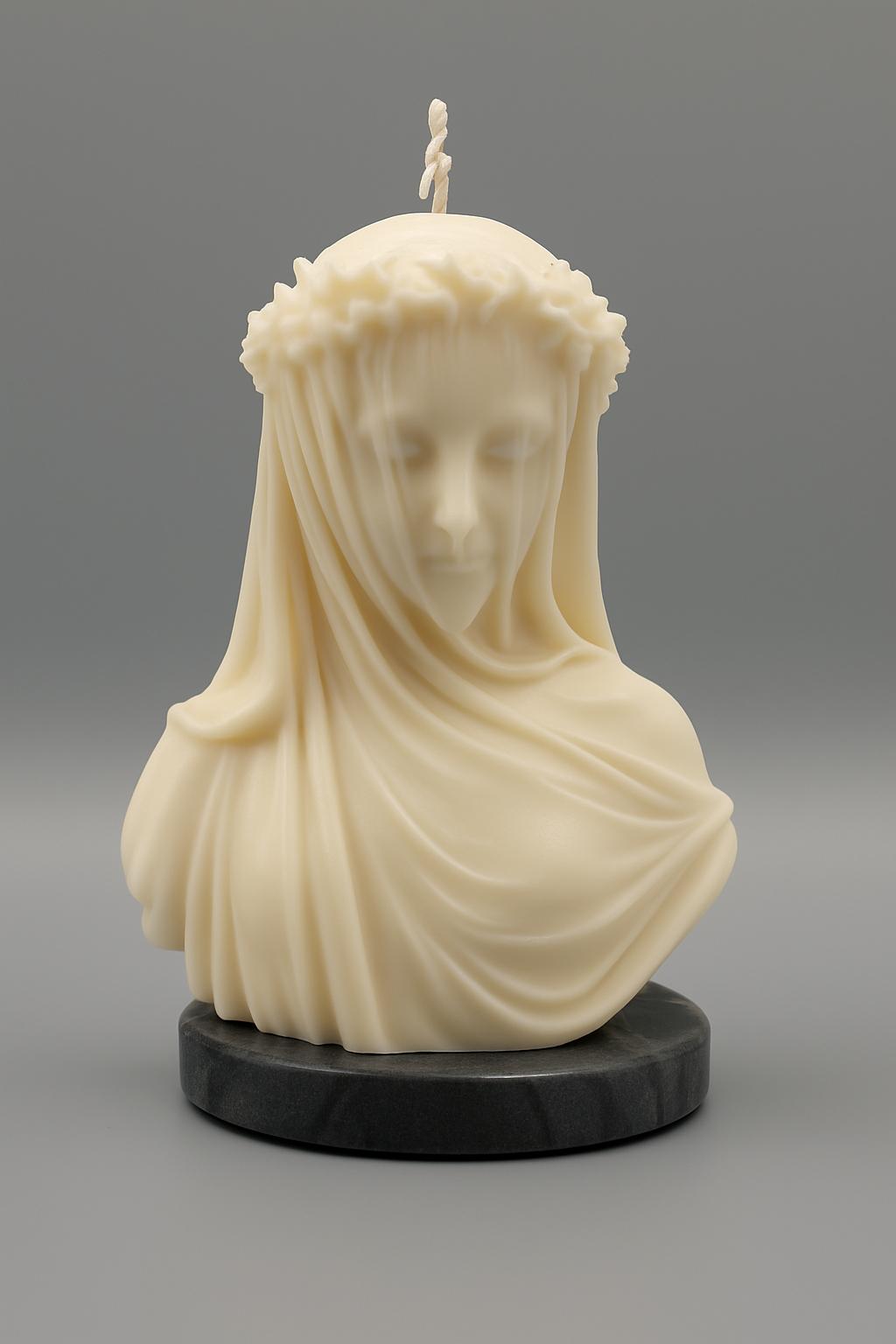 Como el mármol que revela sin mostrar, The Veil envuelve tu espacio con la delicadeza de la feminidad virtuosa y el enigma sagrado. Inspirada en la figura velada de la Virgen, esta vela es un recordatorio de la luz interior que habita detrás de todo velo: pureza, sabiduría y un amor infinito que sostiene el universo.