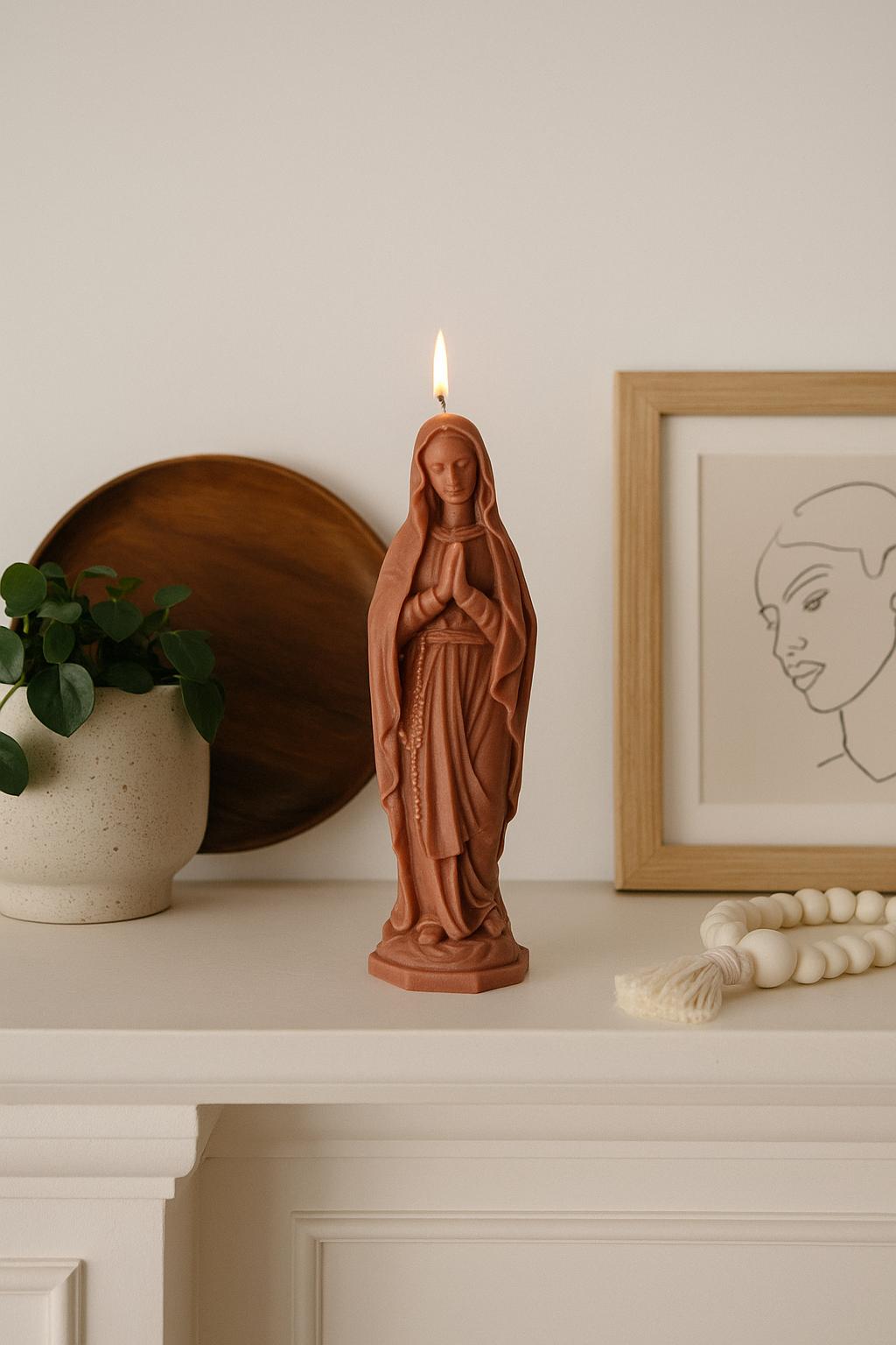 La Vela Madre Divina es más que una pieza decorativa: es un faro de fe y conexión espiritual. Su delicada forma, inspirada en la Virgen, invita a cultivar momentos de introspección, oración y gratitud, mientras su presencia llena el espacio de paz y serenidad.